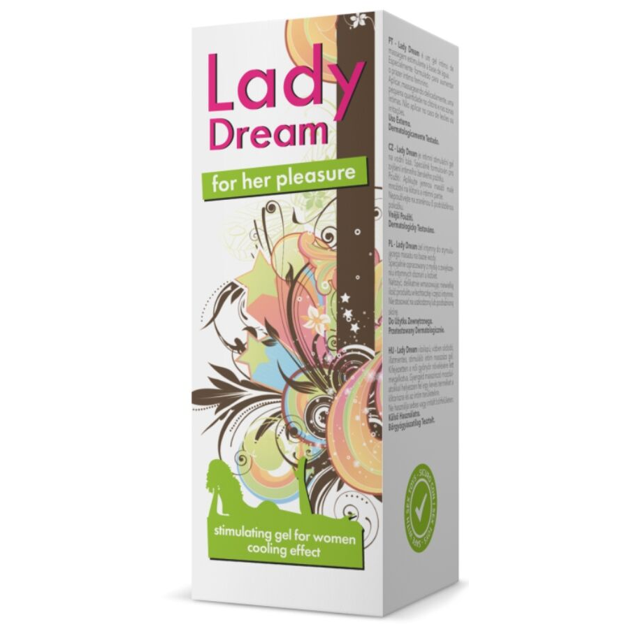 Lady Dream aumenta o desejo e o prazer sexual, bem como a frequência e intensidade do orgasmo. É um gel seguro e prático adequado a todas as mulheres, à base de arginina, um aminoácido capaz de estimular o fluxo sanguíneo para a zona genital feminina, com o consequente aumento da estimulação sexual da mulher.
