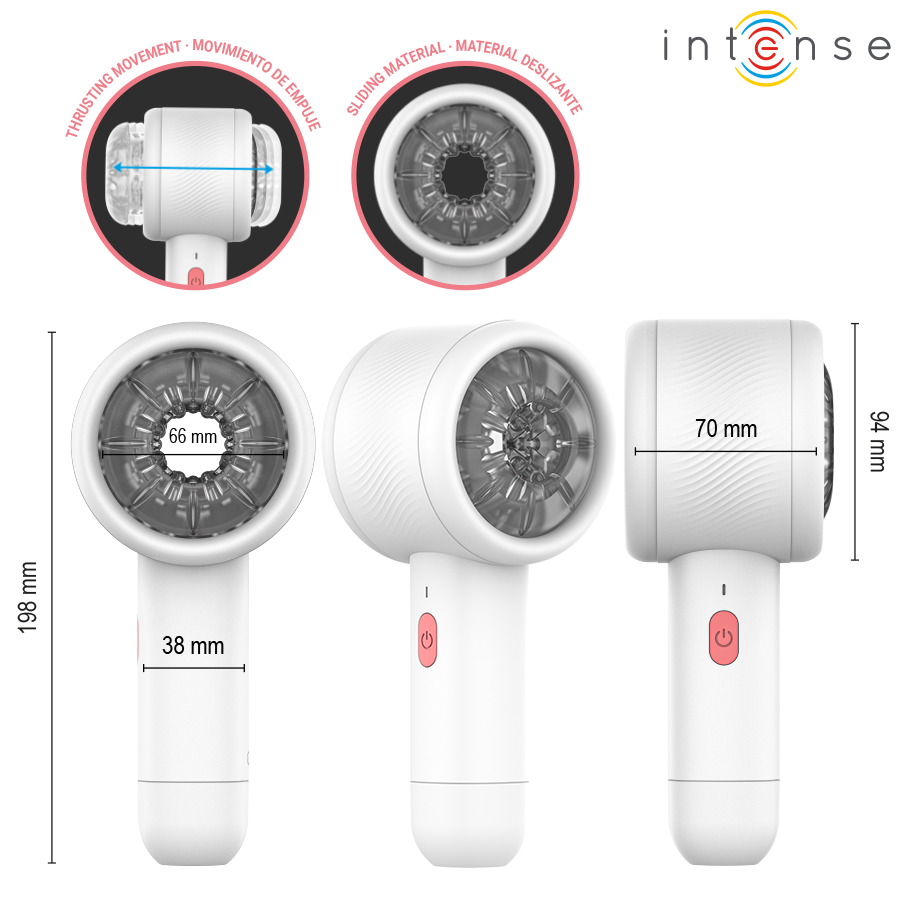 Inclui 7 funções de movimento telescópico e de impulso , combinadas com um movimento deslizante extra potente que intensifica cada sensação. No interior, você encontrará uma capa macia e flexível feita de materiais não invasivos, com uma textura interna que estimula o pênis enquanto as funções de movimento estão ativas.