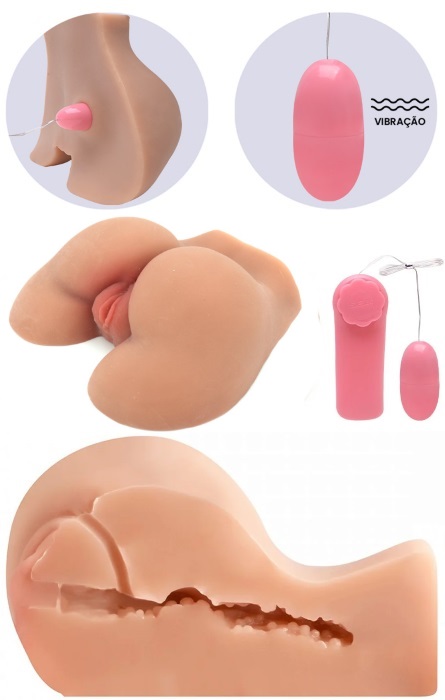 O Vibrador Masturbador apresenta dois furos reais: um canal vaginal e um anal.